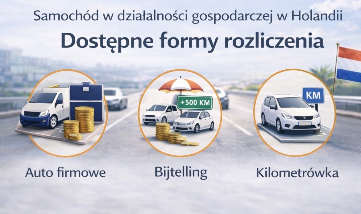 Wielu przedsiębiorców prowadzących firmę w Holandii korzysta z samochodu w codziennej pracy. Już na etapie rozliczeń podatkowych pojawia się jednak pytanie: w jaki sposób ująć auto w firmie, aby było to zgodne z przepisami i jednocześnie korzystne podatkowo.